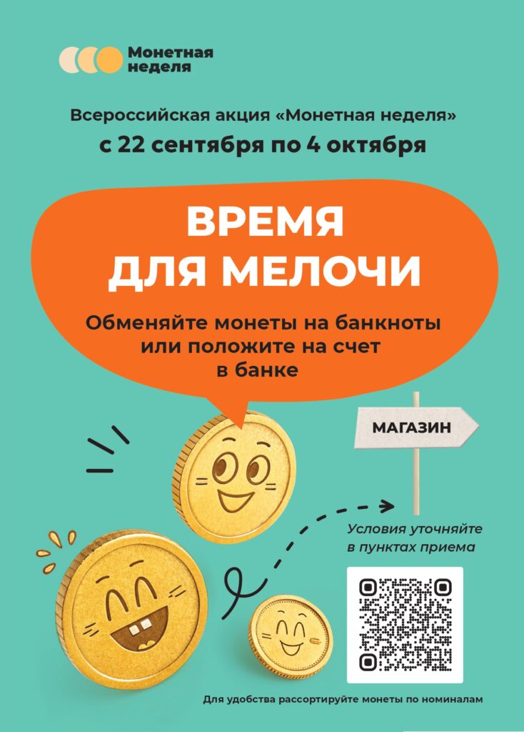 Всероссийская акция «Монетная неделя» пройдет с 22 сентября по 4 октября 2025 года.