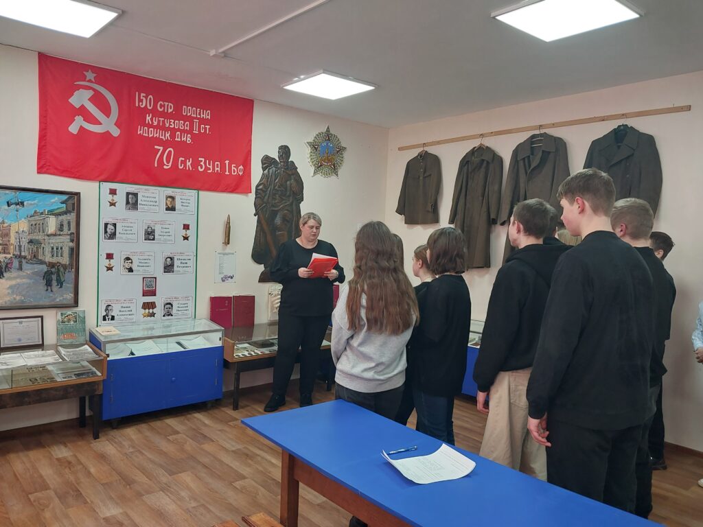 В преддверии Дня защитника Отечества в музее провели экскурсию под названием «На страже Родины». Гости узнали о значении праздника, его истории и важности для нашей страны. Вспомнили подвиги земляков в годы Великой Отечественной войны, участников ликвидации последствий Чернобыльской и Кыштымской аварий. Посетителям рассказали о воинах-интернационалистах, погибших за Родину при выполнении боевых задач.